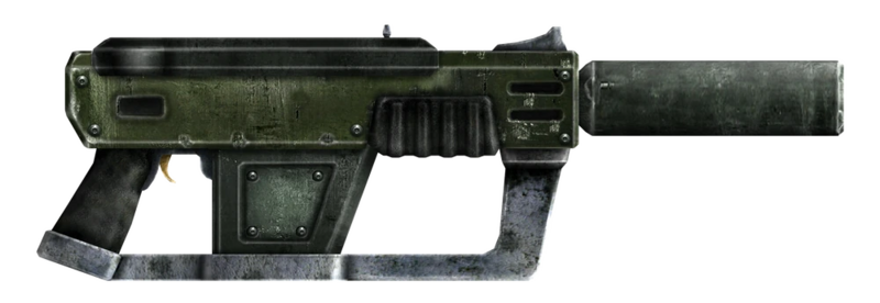 This picture taken from the "12.7mm submachine gun" article on the Fallout Wiki at Fandom and is licensed under the Creative Commons Attribution-Share Alike License.